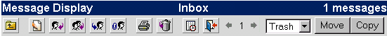 多封郵件的狀況下,在數字"1"旁會有向左和向右的方線指標。(向左指標代表要切換到前一封郵件,而向右指標代表要切換到下一封郵件)。 指標中的數字表示你目前看的郵件是第幾封。 (1 表示是在該信件匣中的第一封郵件)。